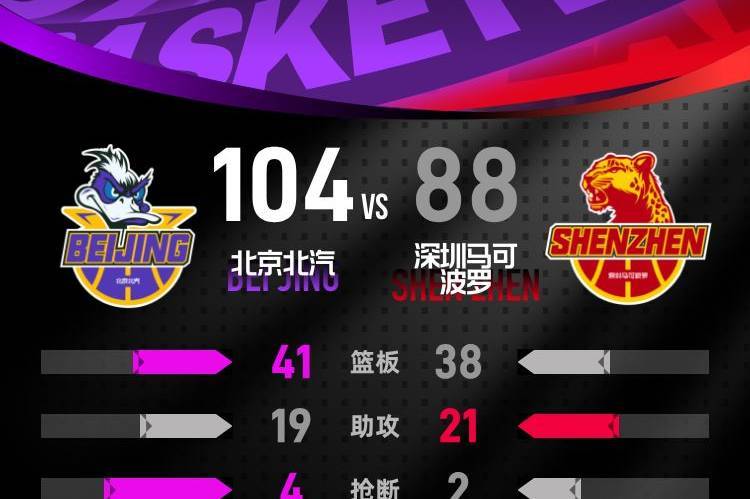 【搜狐体育战报】北京时间12月20日CBA常规赛第4轮,主场作战的北京北汽以104-88击败深圳马可波罗,北京北汽取得4连胜。尤金·杰曼24分4篮板5助攻,贺希宁27分5篮板4助攻。