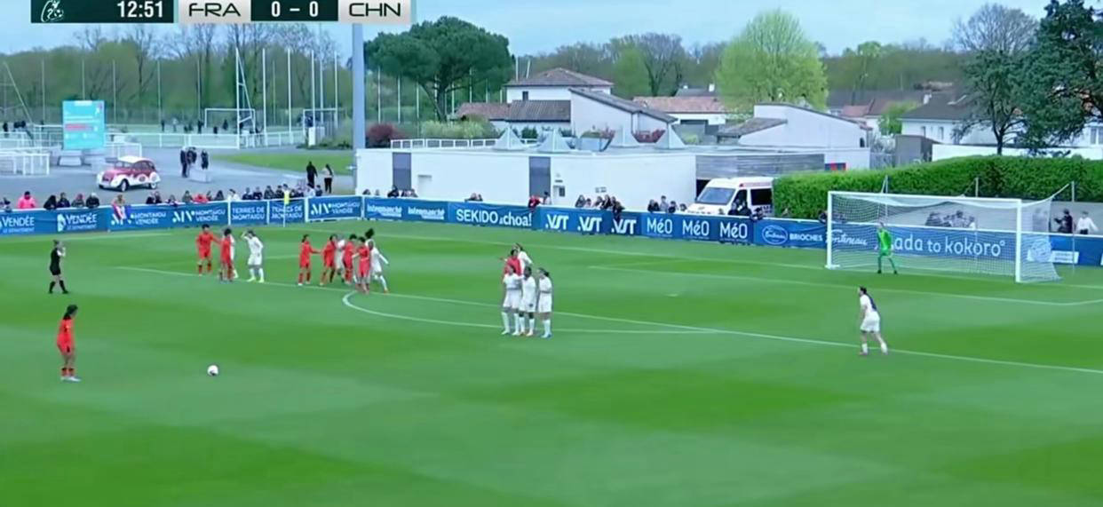 比赛第15分钟时,中国队获得前场关键任意球机会。面对对方严密构筑的人墙及门将的看守,周瑾彤沉着应战,一气呵成助跑起脚,皮球划过一道弧线,精准避开防守球员和守门员的扑救范围,直挂死角,直接任意球精美破门。这粒进球点燃了全队士气,让中国U16女足率先打破僵局,占据主动。